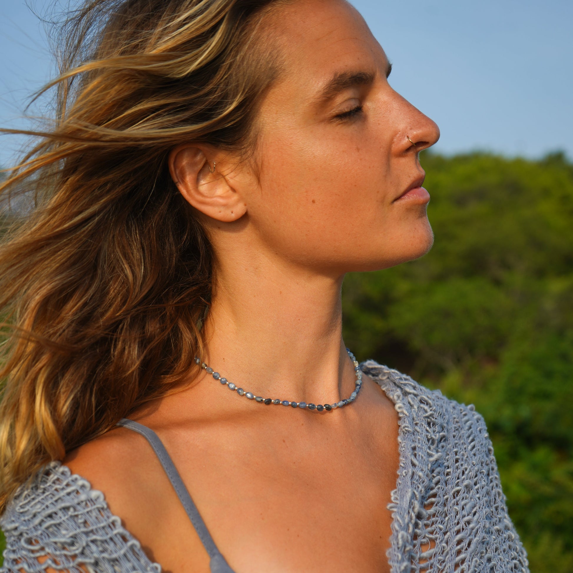 Die Kyanit-Perlen erinnern an die Blautöne von sanften Wellen an einem Sommermorgen.